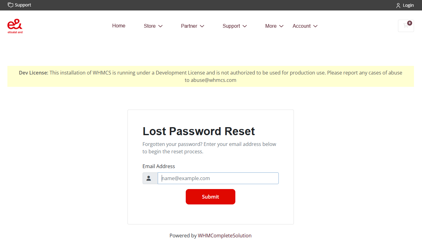 Dev License: This installation of WHMCS is running under a Development License and is not authorized to be used for production use. Please report any cases of abuse to abuse@whmcs.com